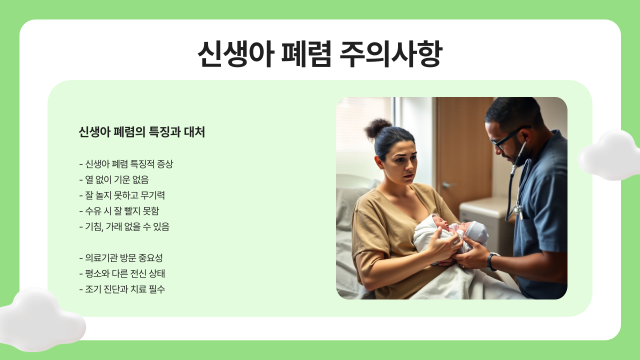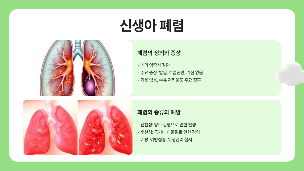 - 선천성 폐렴: 분만 시 양수를 마시거나 감염된 양수를 흡입했을 때 발생합니다.